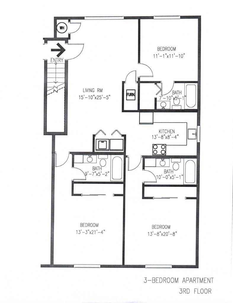 3 Bedroom & 3 Bathroom Single Floor Apartment, Blinds on All Windows, Hardwood-style Plank Flooring, Kitchen & Bath w/ Tiled Accents, Furnished Living Room, Kitchen & Bedroom, Sprinkler System