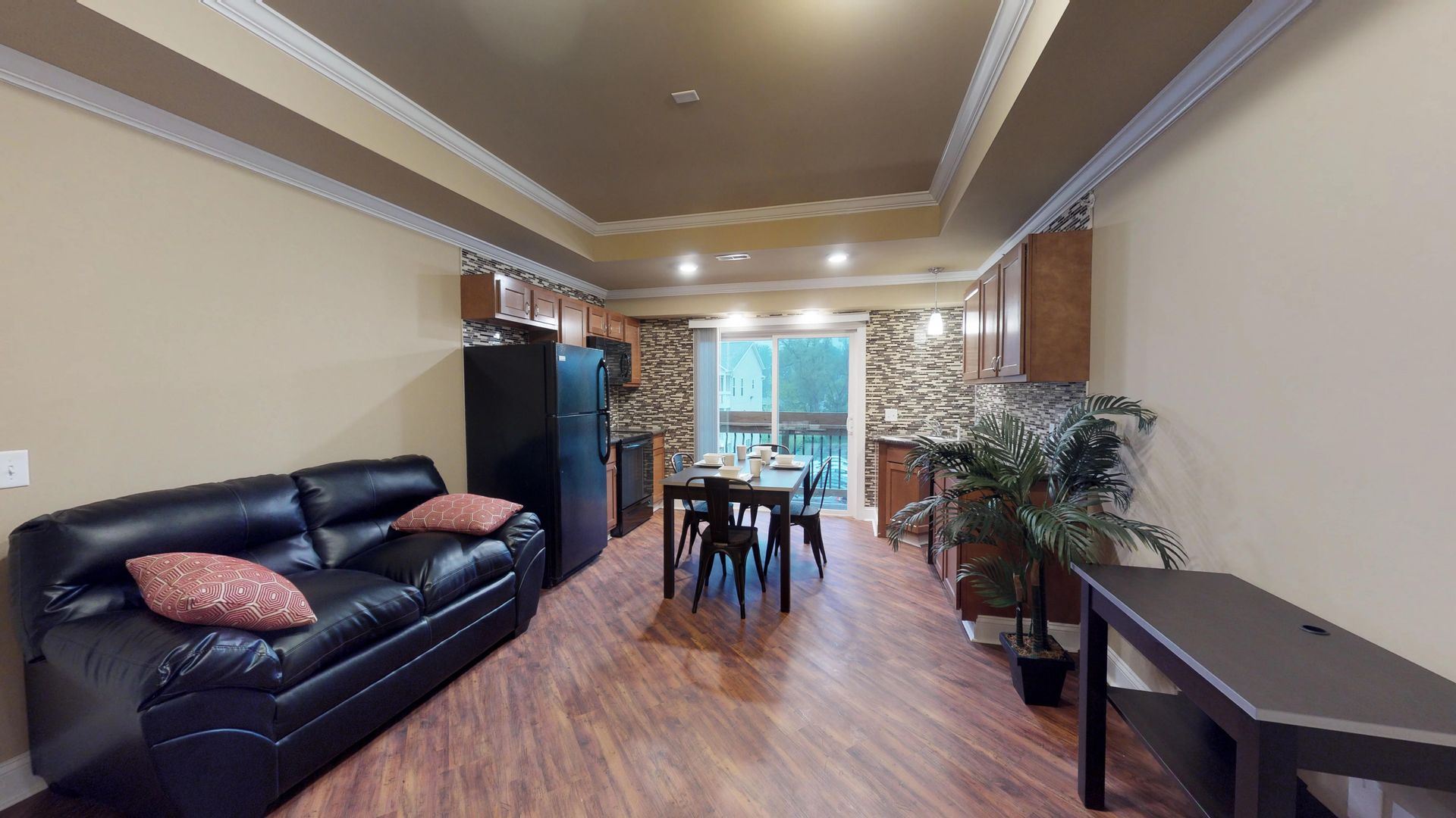 All appliances included along w/ internet, garbage & water, resident pays gas & electric. Constructed w/ sound-retardant materials & sprinklers, units feature central air/ heat & luxurious touches like high ceilings, overhead lighting w/ fans, tiled kitchen & bath accents, wood-like vinyl plank flooring & bedrooms w/ high density padded carpet. Full furniture set in the living room, kitchen, & bedrooms.