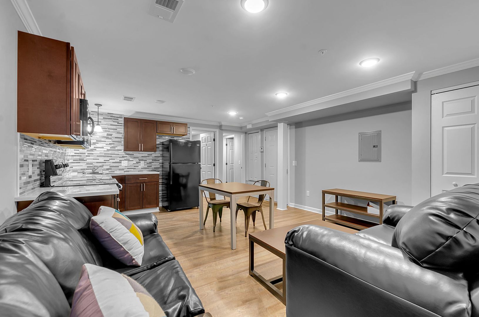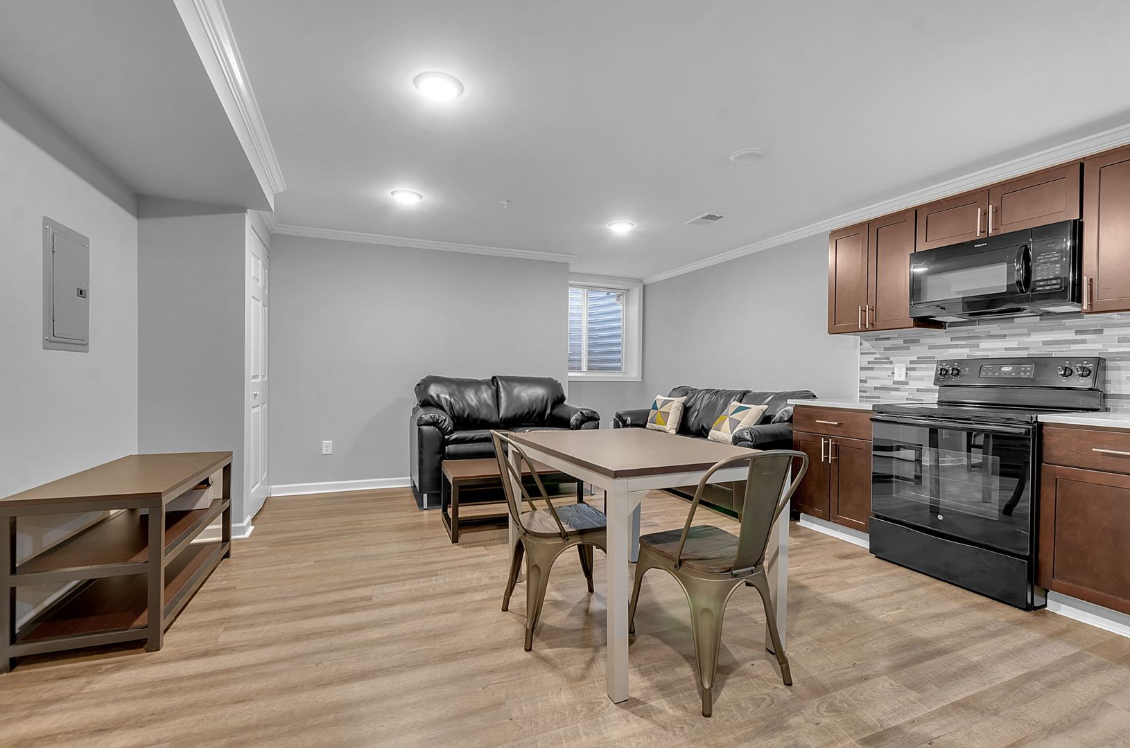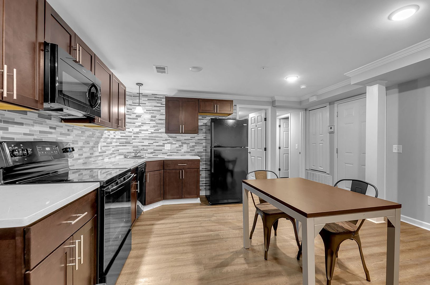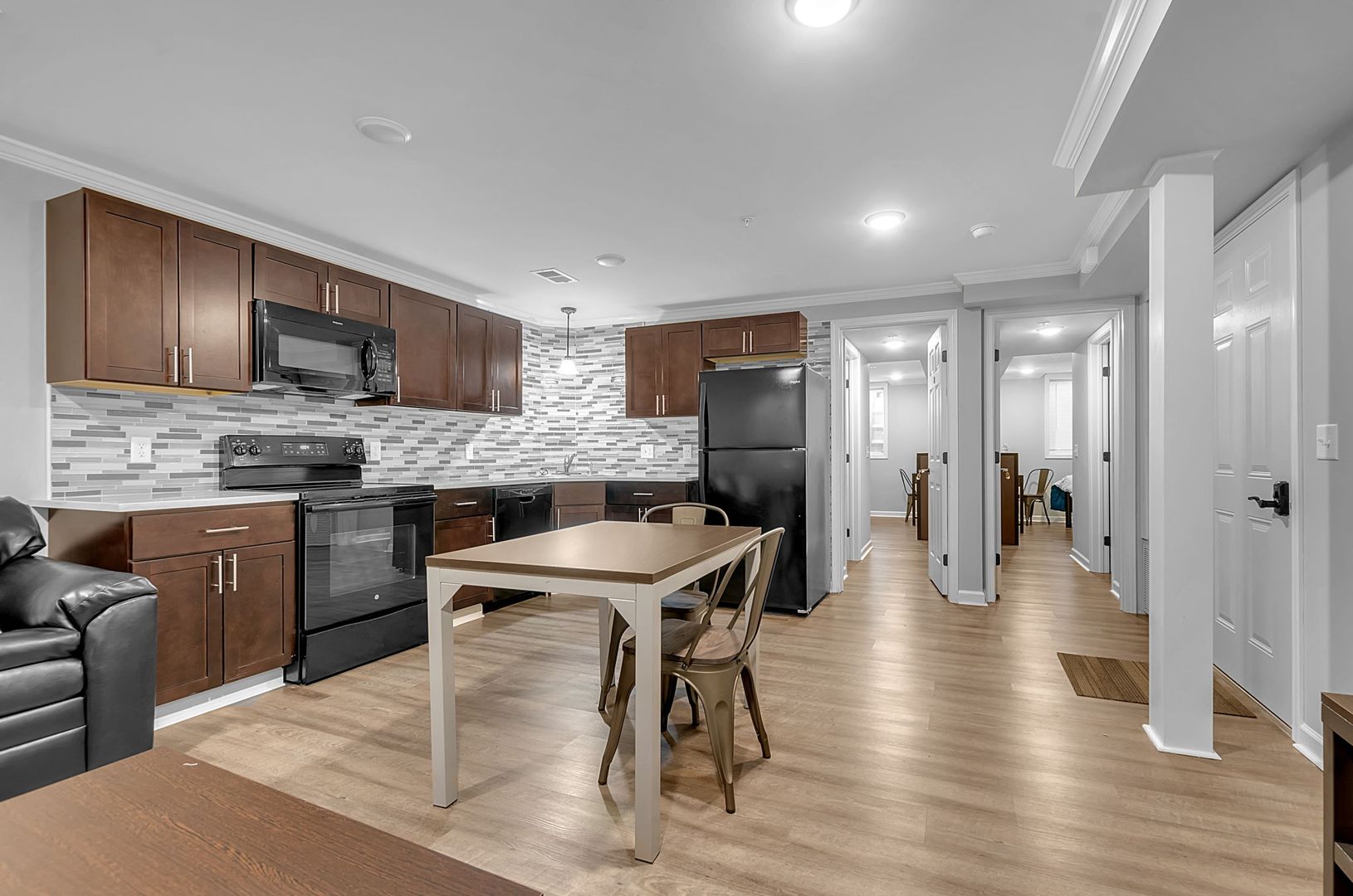 All appliances included along w/ internet, garbage & water, resident pays gas & electric. Constructed w/ sound-retardant materials & sprinklers, units feature central air/ heat & luxurious touches like high ceilings, overhead lighting w/ fans, tiled kitchen & bath accents, wood-like vinyl plank flooring. Full furniture set in the living room, kitchen & bedrooms.