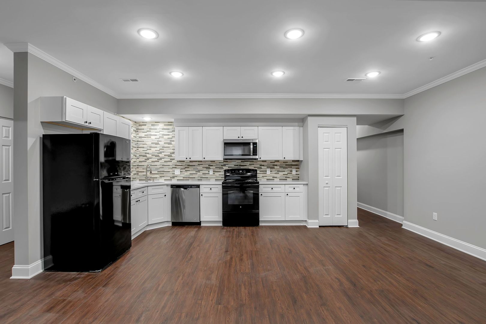 All appliances included along w/ internet, garbage & water, resident pays gas & electric. Constructed w/ sound-retardant materials & sprinklers, units feature central air/ heat & luxurious touches like high ceilings, overhead lighting w/ fans, tiled kitchen & bath accents, wood-like vinyl plank flooring. Optional full furniture set in the living room, kitchen & bedrooms.