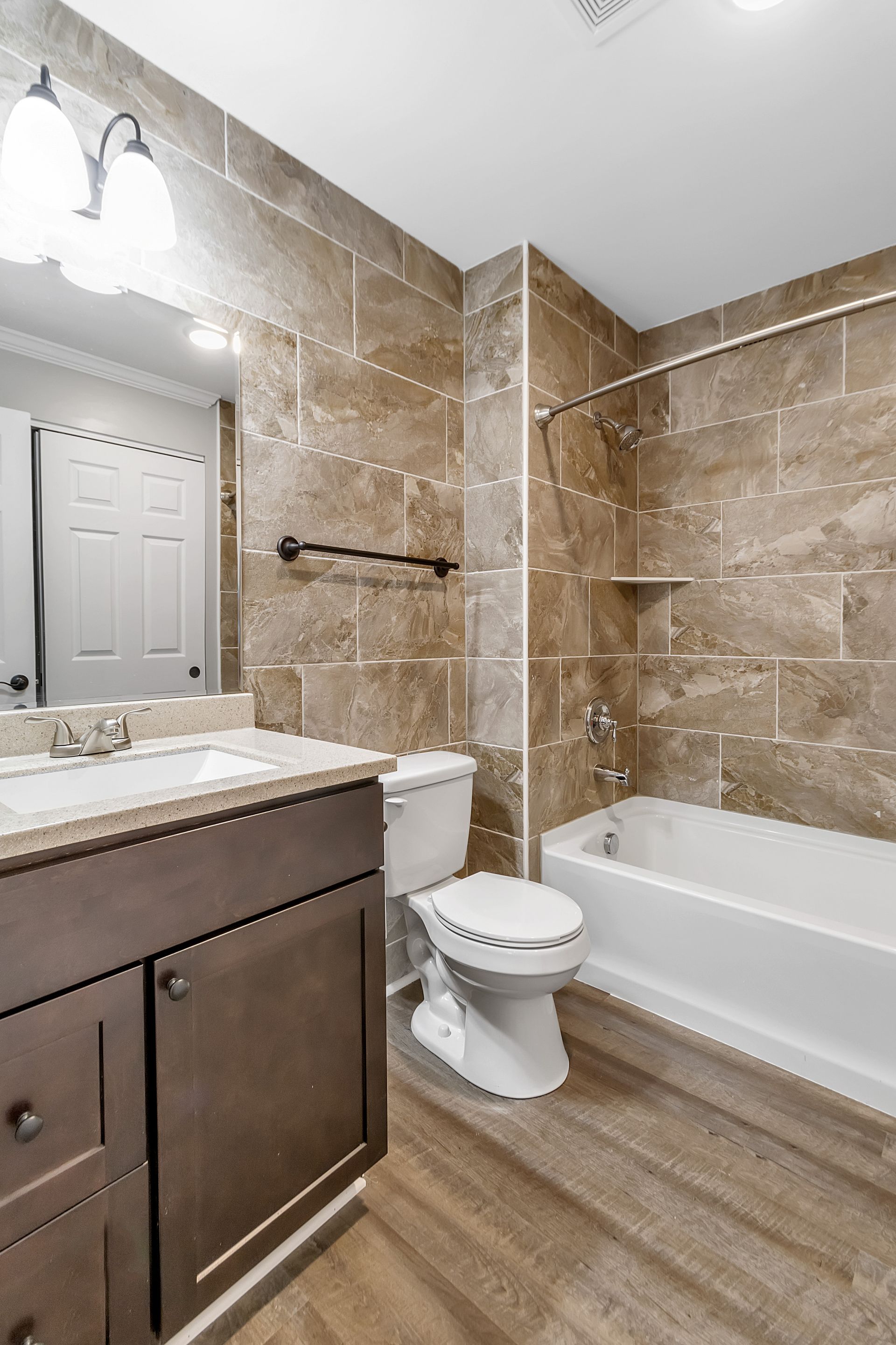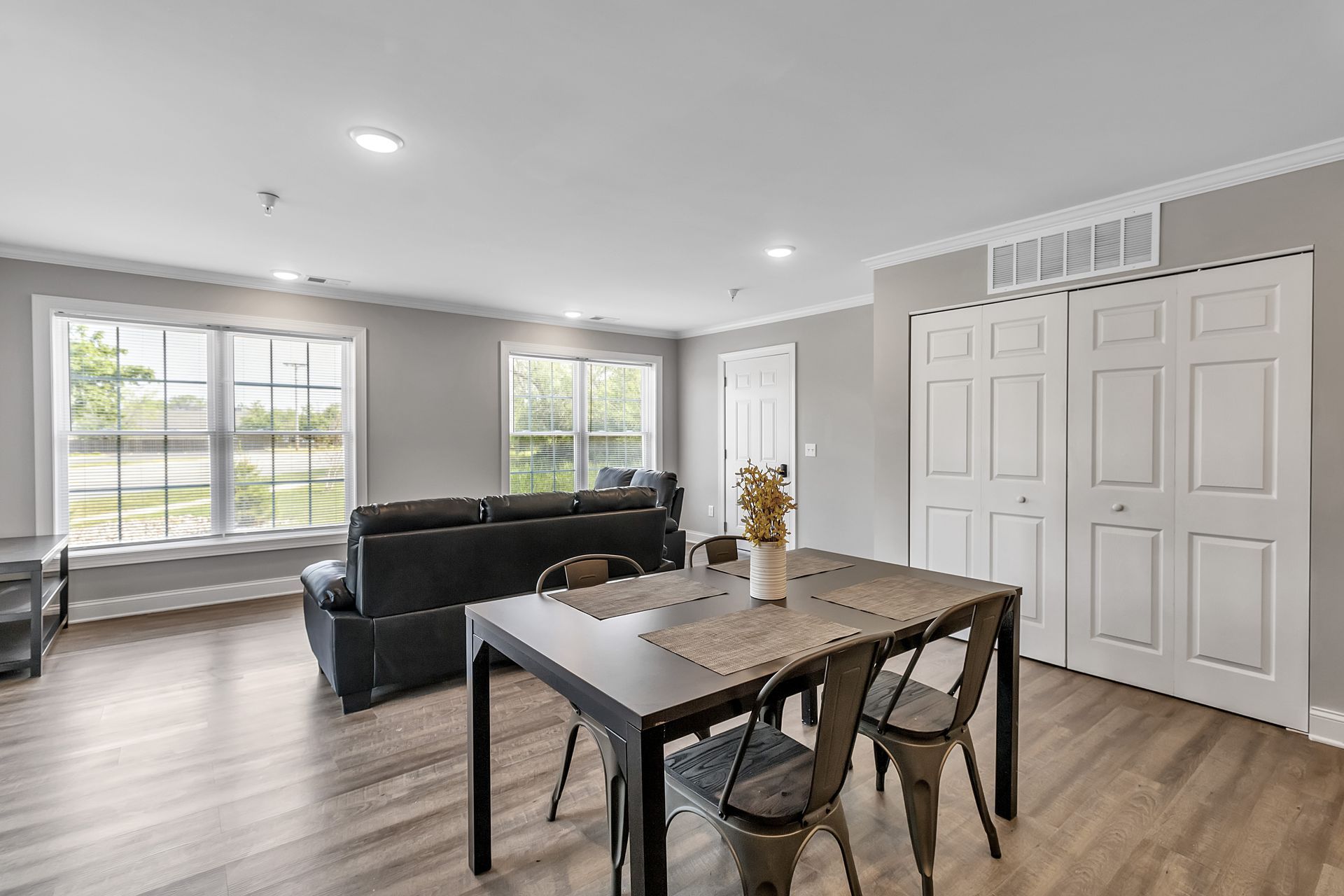 4 Bedroom & 4 Bathroom Single-floor Apartment, Blinds on All Windows, Hardwood-style Plank Flooring, Kitchen & Bath w/ Tiled Accents, Furnished Living Room, Kitchen & Bedrooms, Sprinkler System
