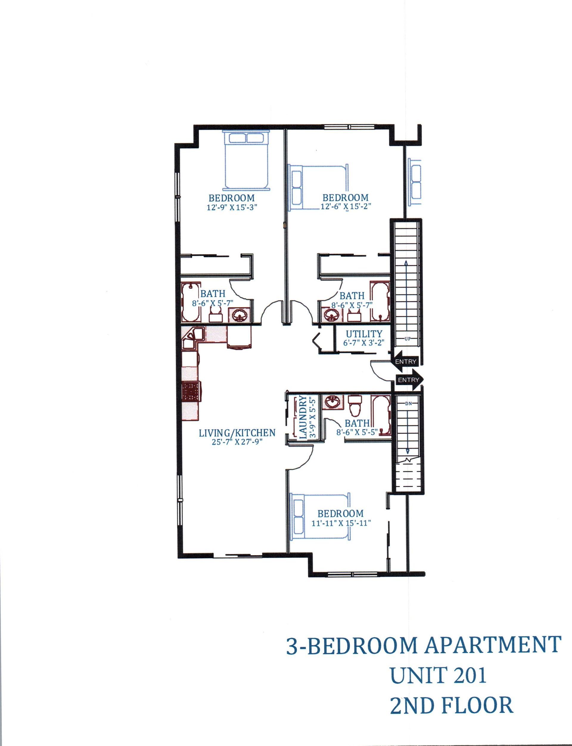 3 Bedroom & 3 Bathroom Single Floor Apartment, Blinds on All Windows, Hardwood-style Plank Flooring, Kitchen & Bath w/ Tiled Accents, Furnished Living Room, Kitchen & Bedroom, Sprinkler System